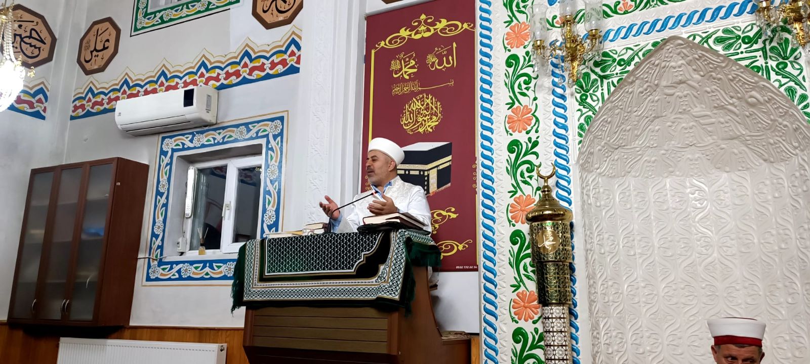 Kağızman İlçe Müftüsü Abdüsselam Çakmak ,Kağızman Hacı Kağızman camii muhafazasını kayıtlı ramazan ayına yetiştirip tekrar ibadete açılmasında emek sarfeden Hacı Kağızman Cami imam hatibi Halil Karabıyık ve muazzin Mehmet Kılıç'a teşekkür plaketi verdi.