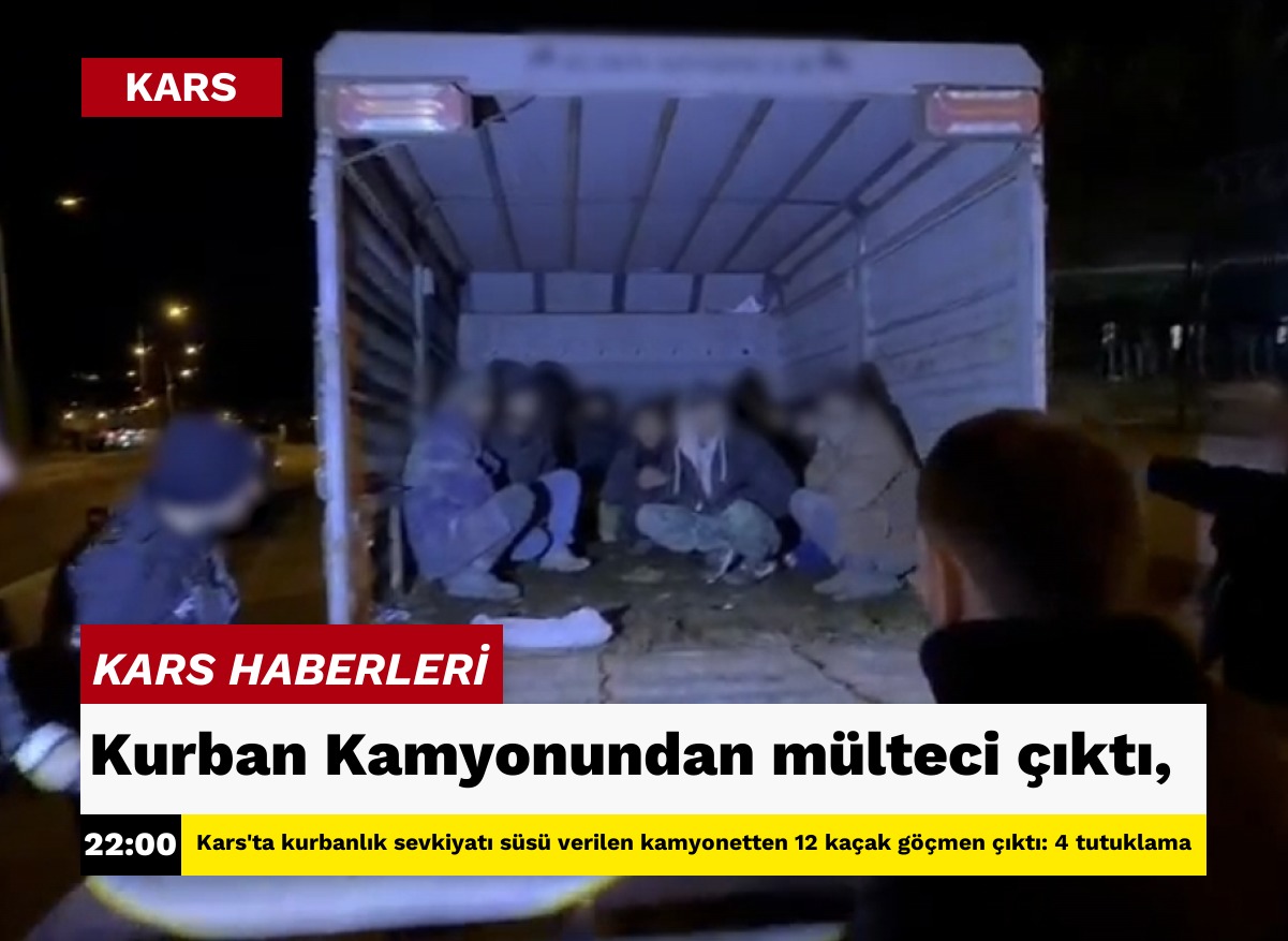 Hayvan pazarındaki yoğunluktan faydalanmak ve dikkat çekmemek amacıyla kurbanlık sevkiyatı süsü verilen kamyonetin kasasında yapılan detaylı aramalarda, yasa dışı yollarla Türkiye'ye giren Afganistan uyruklu 12 düzensiz göçmen yakalanarak muhafaza altına alındı.