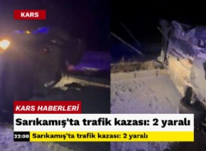 Sarıkamış'ta sürücüsünün direksiyon hakimiyetini kaybettiği otomobil yan yattı. Kazada 2 kişi yaralandı.